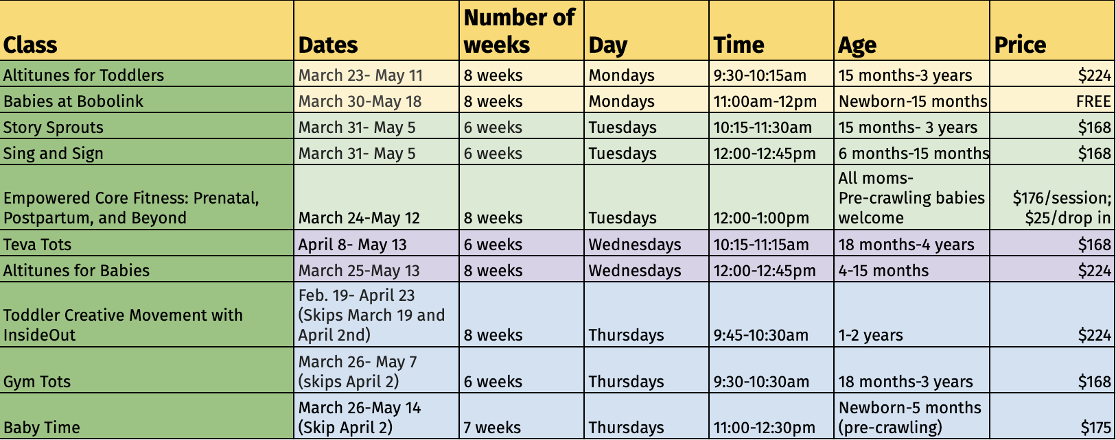 Scroll for class options and on-going classes